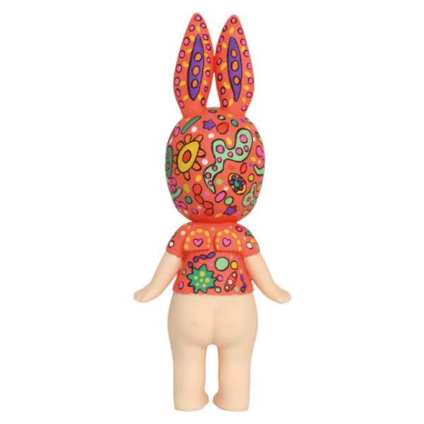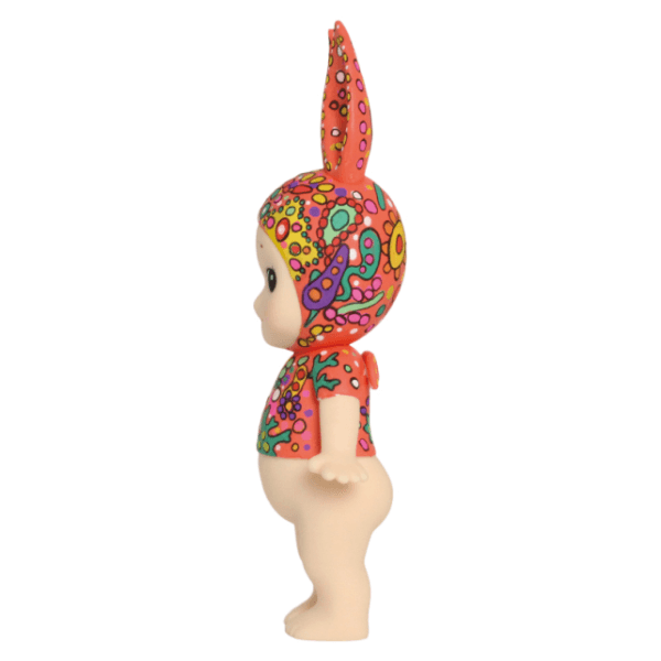 大人可愛いコーラルピンクのボディには、ドットで描かれた色とりどりの花が咲き、お部屋をパッと明るく彩ります。