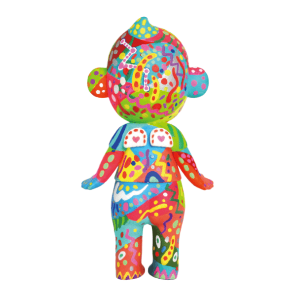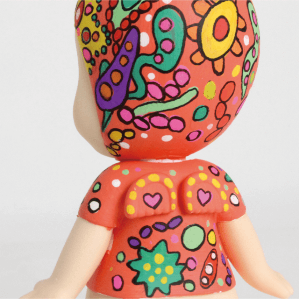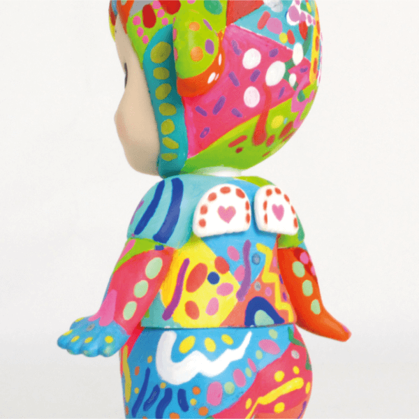 カラフルな絵の具とペンで、とびきりポップなカラーで制作しました。